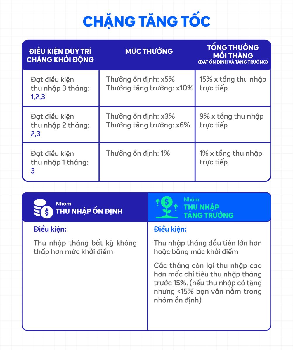 Khởi động là chưa đủ, giờ là lúc bạn chứng minh bản lĩnh bền bỉ để bứt phá ngoạn mục trên hành trình thu nhập cùng MFast! Chặng Tăng Tốc là cơ hội để các bạn chứng tỏ bản lĩnh, bứt tốc thu nhập để nhân đôi thưởng trong Quý II này!