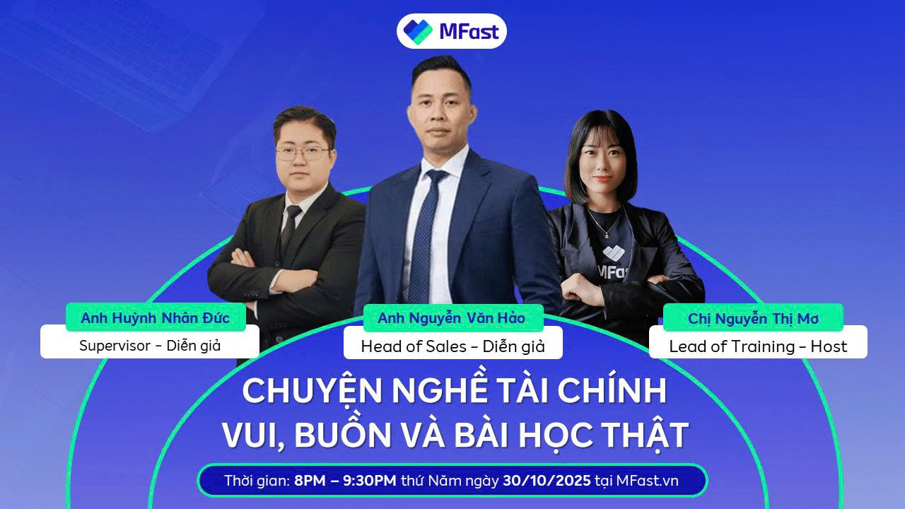 ĐỪNG CHIẾN ĐẤU MỘT MÌNH NỮA! MFast mời bạn giao lưu cùng những người từng trải – họ đã trải qua mọi thăng trầm của nghề tài chính – để chia sẻ BÀI HỌC THẬT và tìm ra LỐI ĐI ĐỘT PHÁ cho sự nghiệp của bạn!